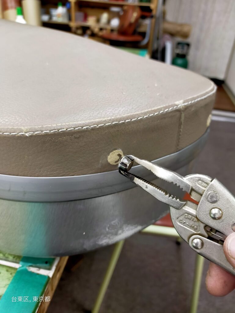 お客様が、瞬間接着剤で取り付けた「底鋲」を外し