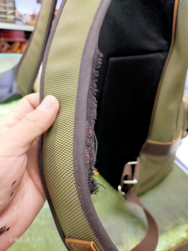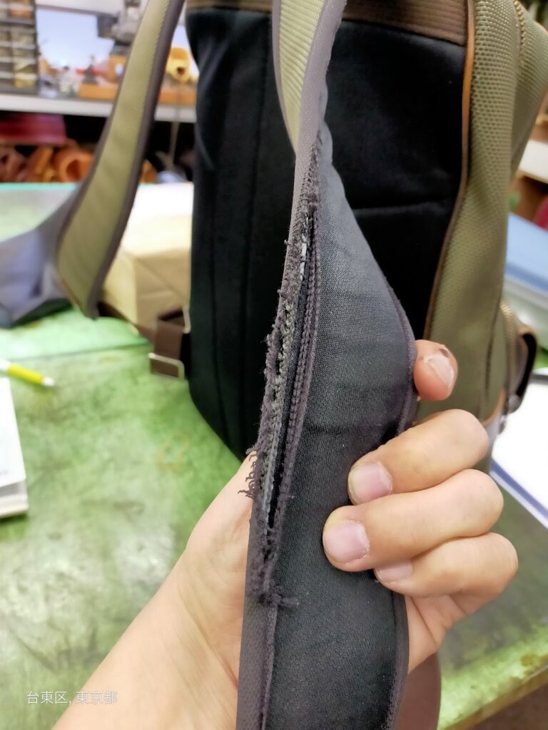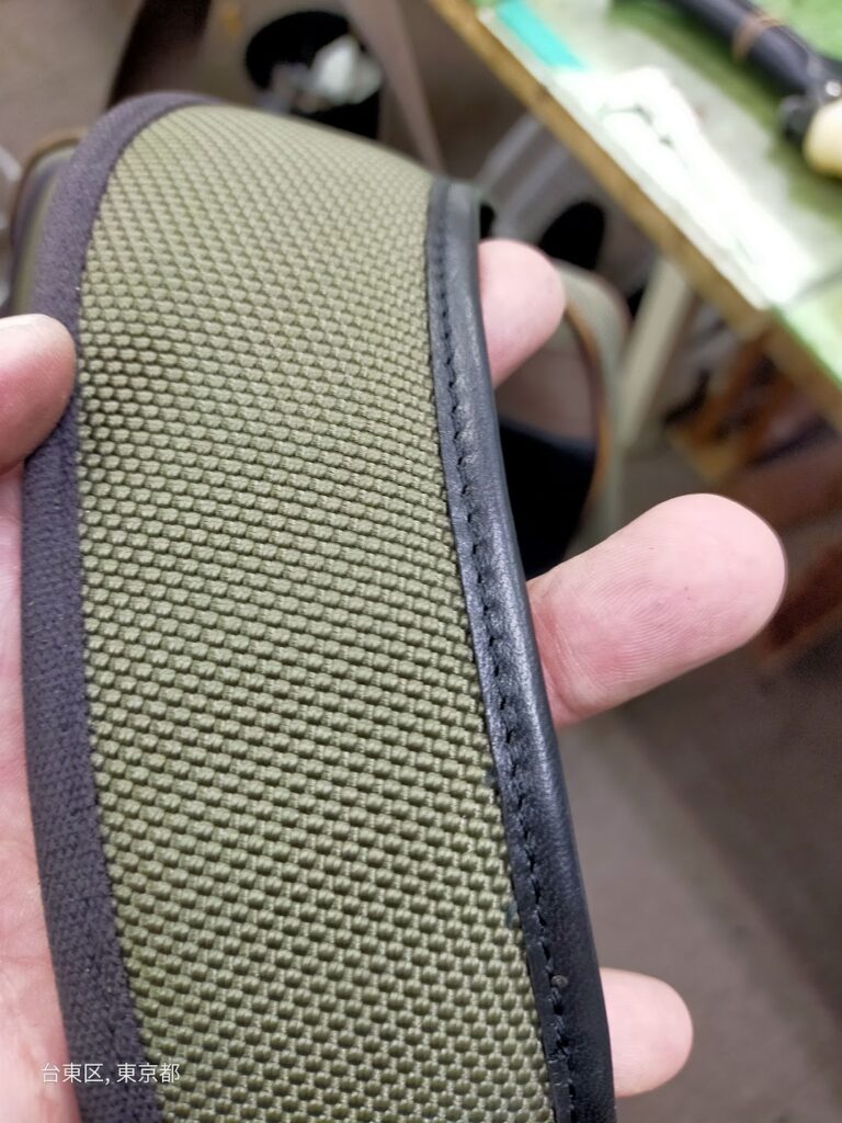 お客様と相談して、ほつれてる範囲を 革で補強する事になりました。