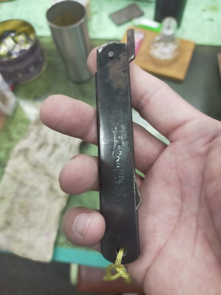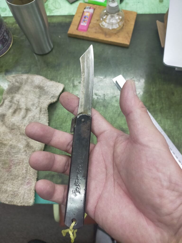 【教室の一コマ】 肥後ノ王様 ペーパーナイフ 2025年9月23日 教室の一コマペーパーナイフ手縫い教室東京浅草橋砥ぎ直し鞄 by wpfujikabankobo1. 水曜日の生徒さんが、実家から祖父が持っていた ペーパーナイフを 持ってこられました。 なんで? 結果、砥いでしましました😓 ちょっと、興味本位で調べてみた所。 「肥後守(ひごのかみ)」と言うペーペーナイフは、明治時代から存在し。 当時、小学生時代には誰もが持っていたくらいの物だったそうです。 ( PTAから贈られていたそうです。) ちなみに、今回持ってこられた「肥後ノ王様」は 兵庫県小野市から昭和31年に商標登録されているそうです。 共有: Facebook で共有するにはクリックしてください (新しいウィンドウで開きます) Facebook クリックして X で共有 (新しいウィンドウで開きます) X 前の記事 次の記事