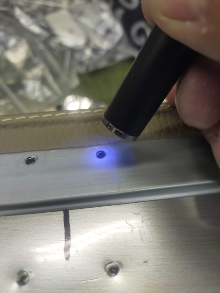 古い穴は、樹脂で塞いでおきます。